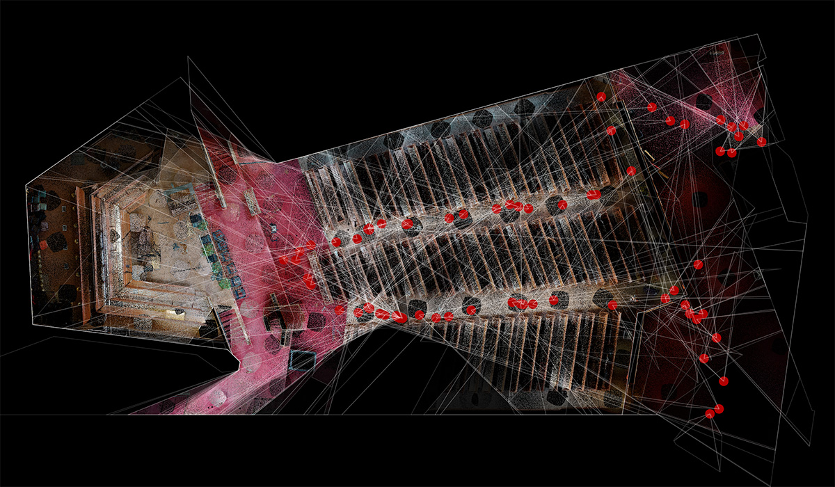 Section showing viewer's gaze within LiDAR‐scan of chapel.